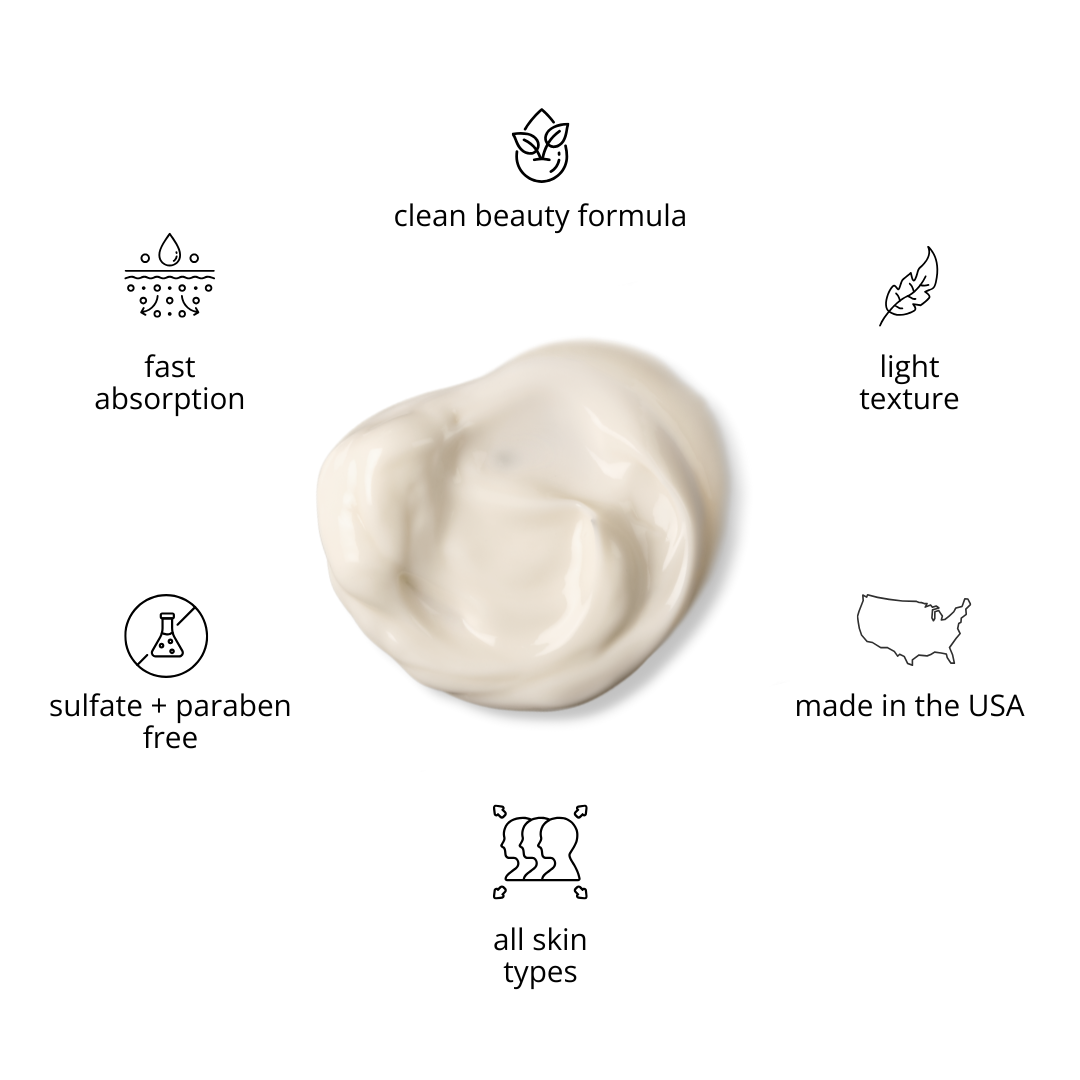 Apply this luxurious crème (packed with Vitamin C, Aloe, Coconut Oil, Cocoa Butter, Macadamia Nut Oil, and Flax Seed Oil) during your day and night routine to hydrate, revitalize, brighten, boost collagen, and protect skin from sun damage. Perfectly combines with our Vitamin C wash, serum, toner, and eye gel.