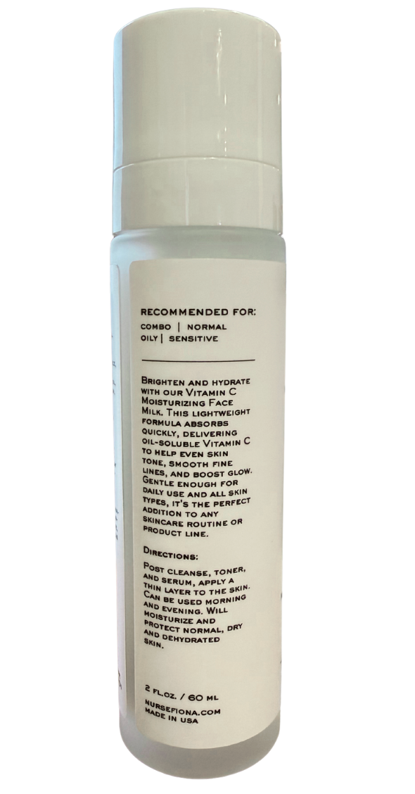 Brighten and hydrate with our Vitamin C Moisturizing Face Milk. This lightweight formula absorbs quickly, delivering oil-soluble Vitamin C to help even skin tone, smooth fine lines, and boost glow. Gentle enough for daily use and all skin types, it's the perfect addition to any skincare routine or product line.