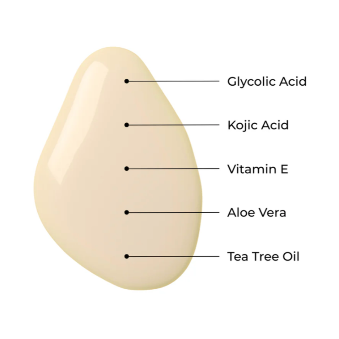20% Vitamin C, Hyaluronic Acid, Ferulic Acid, Vitamin E, and Aloe.